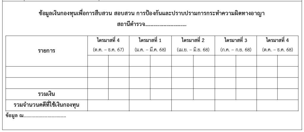ข้อมูลเงินกองทุนเพื่อการสืบสวน สอบสวน การป้องกันและปราบปรามการกระทำความผิดทางอาญา