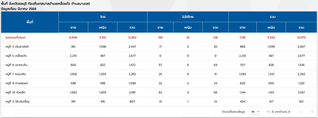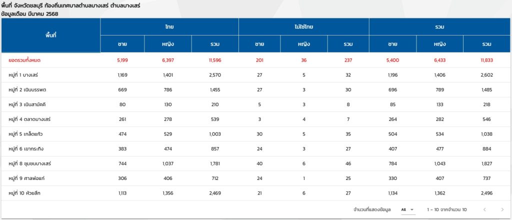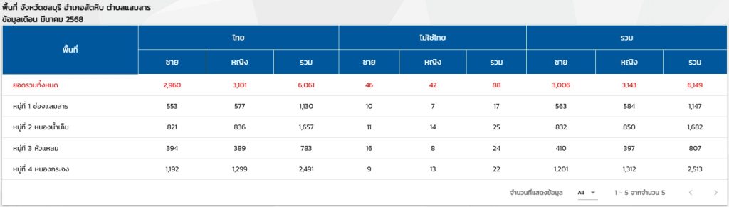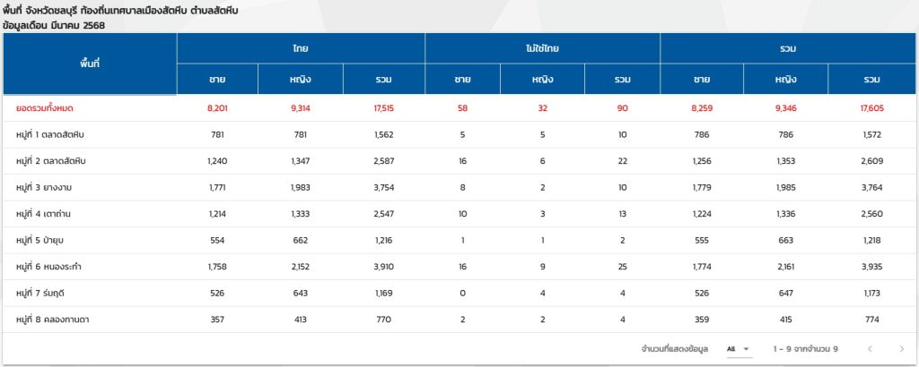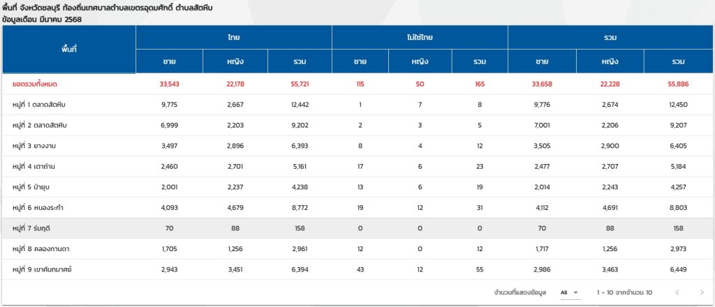 – ข้อมูลพื้นที่ที่รับผิดชอบ ได้แก่ เขต/อำเภอ แขวง/ตำบล และจำนวนประชากร