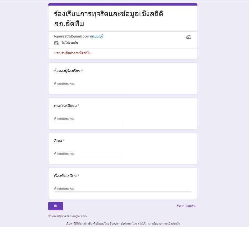 ร้องเรียนให้ระบุว่าไม่มีเรื่องร้องเรียน