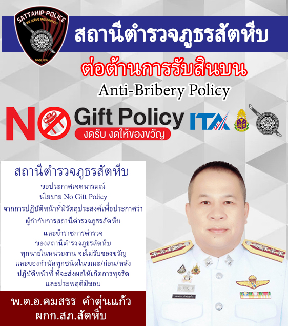 O19 การมีส่วนร่วมของหัวหน้าสถานีตำรวจ 2568 การมีส่วนร่วมของหัวหน้าสถานีตำรวจ 2568 ประกาศต่อต้านการรับสินบน และของขวัญ ( No Gift Policy 2568)