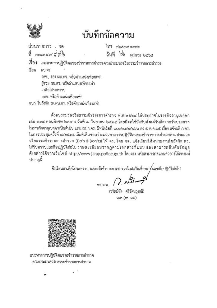 แนวทางการปฏิบัติตนของข้าราชการตำรวจตามประมวลจริยธรรมข้าราชการตำรวจ